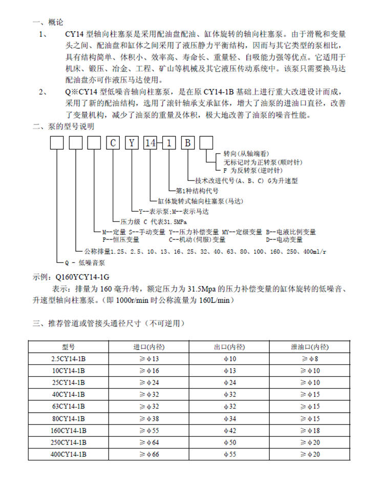壓鑄機械等設備上。下面我們主要介紹柱塞泵160SCY14-1B型號說明、技術參數、產品結構、安裝尺寸、工作原理等。