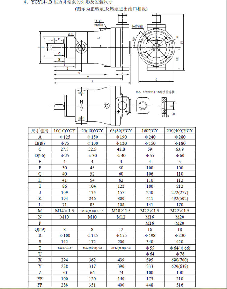 變量柱塞泵40YCY14-1B型號(hào)含義:排量為40毫升/轉(zhuǎn)、額定壓力31.5Mpa的壓力補(bǔ)償變量缸體旋轉(zhuǎn)低噪音,升速型