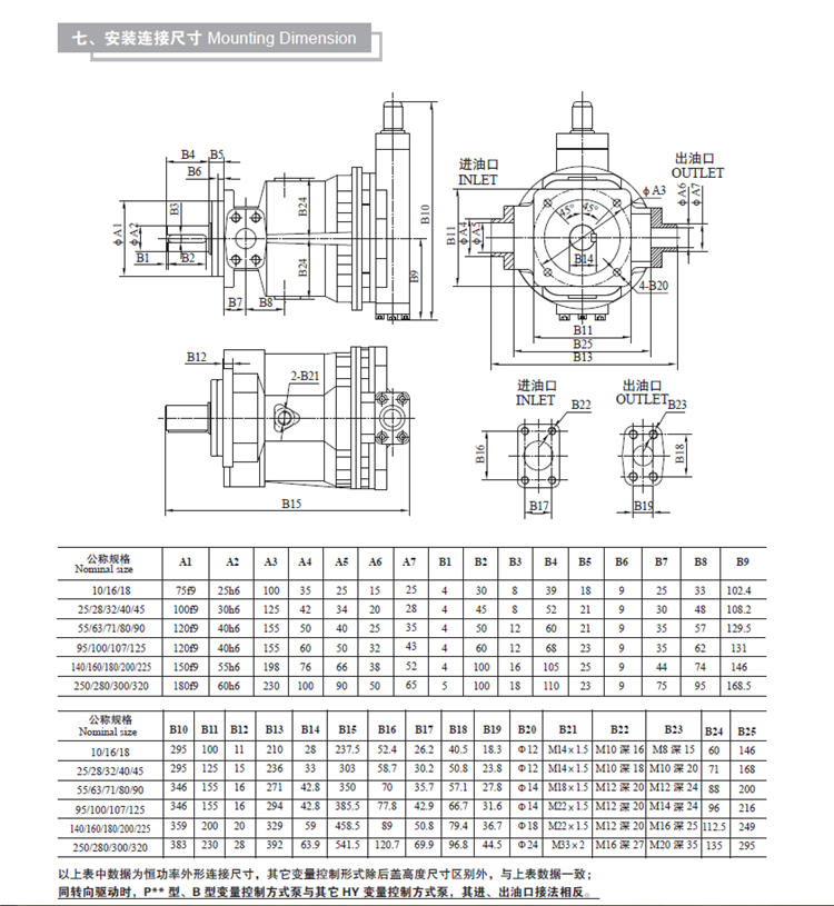 下面主要介紹HY63Y-RP柱塞泵的型號定義,技術參數、連接尺寸、使用事項等。