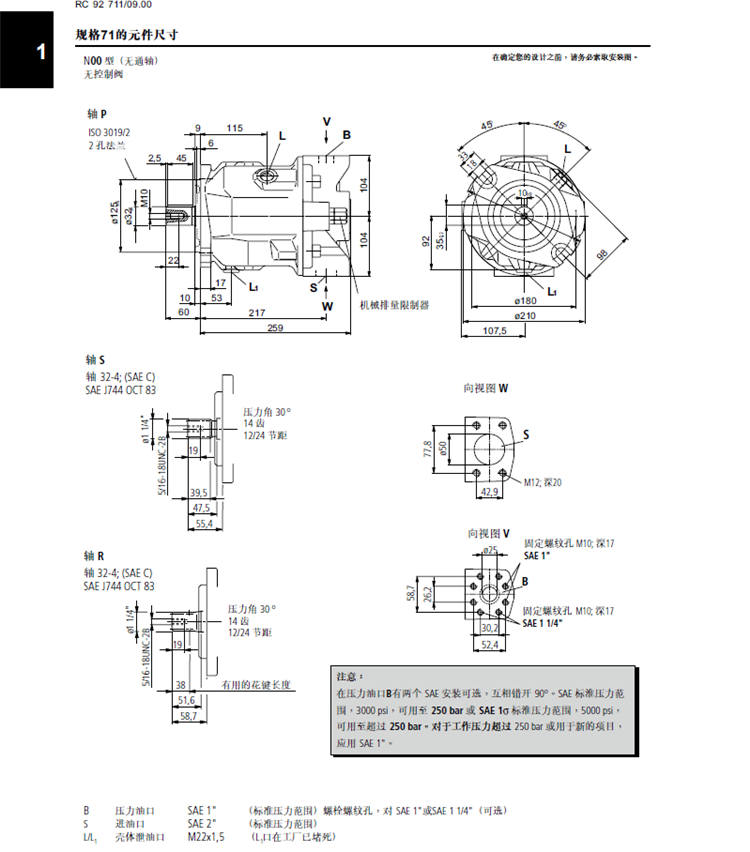 該泵屬于A10VSO系列中排量規格為71的產品之一,因其工作壓力可設定為恒定狀態,也稱其為