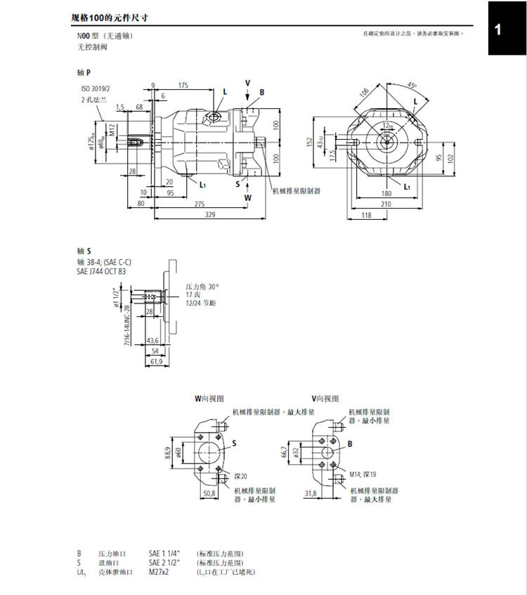 恒壓變量柱塞泵A10VSO100DR相關型號規格如下